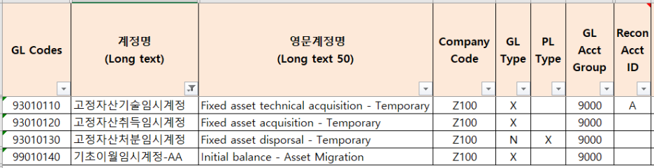 고정자산 관련해서는 임시계정 성격이 여러 개가 존재합니다. S/4HANA 에서는 최소 4개의 임시계정 유형이 필요합니다. 1. 고정자산기술임시계정 (FA Technical Acquisition Temp) 이 계정은 S/4HANA